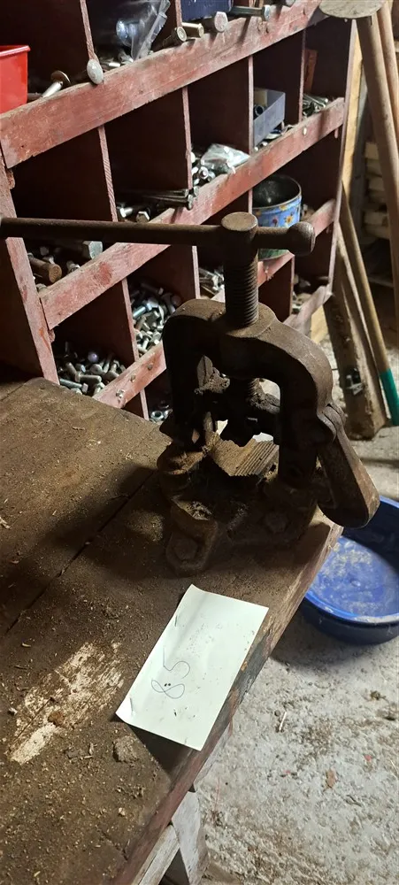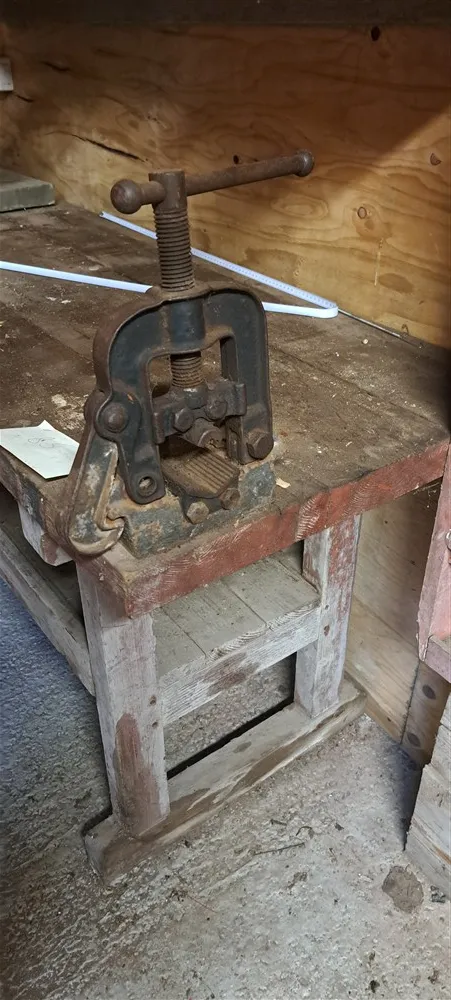 Bänk med rörskruvstycke