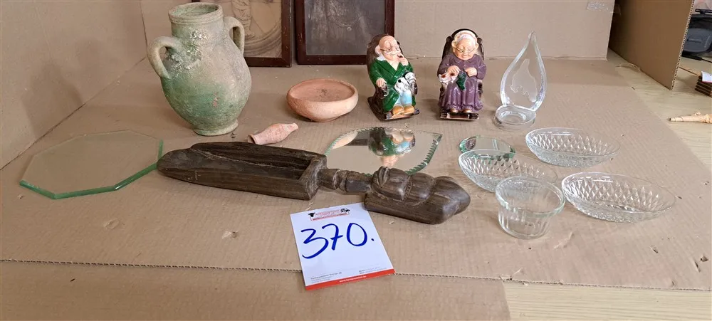 370. Div figuriner, skålar, tavlor, mm