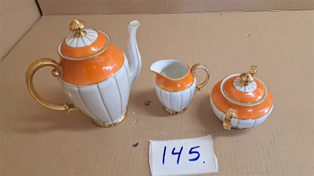 10. Kaffekanna, sockerskål, gräddkanna