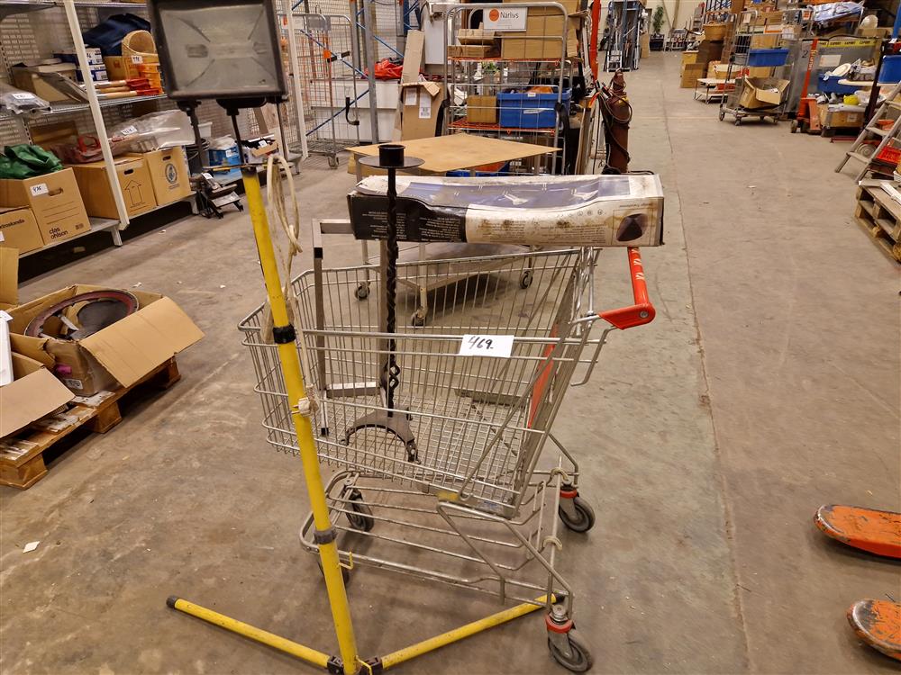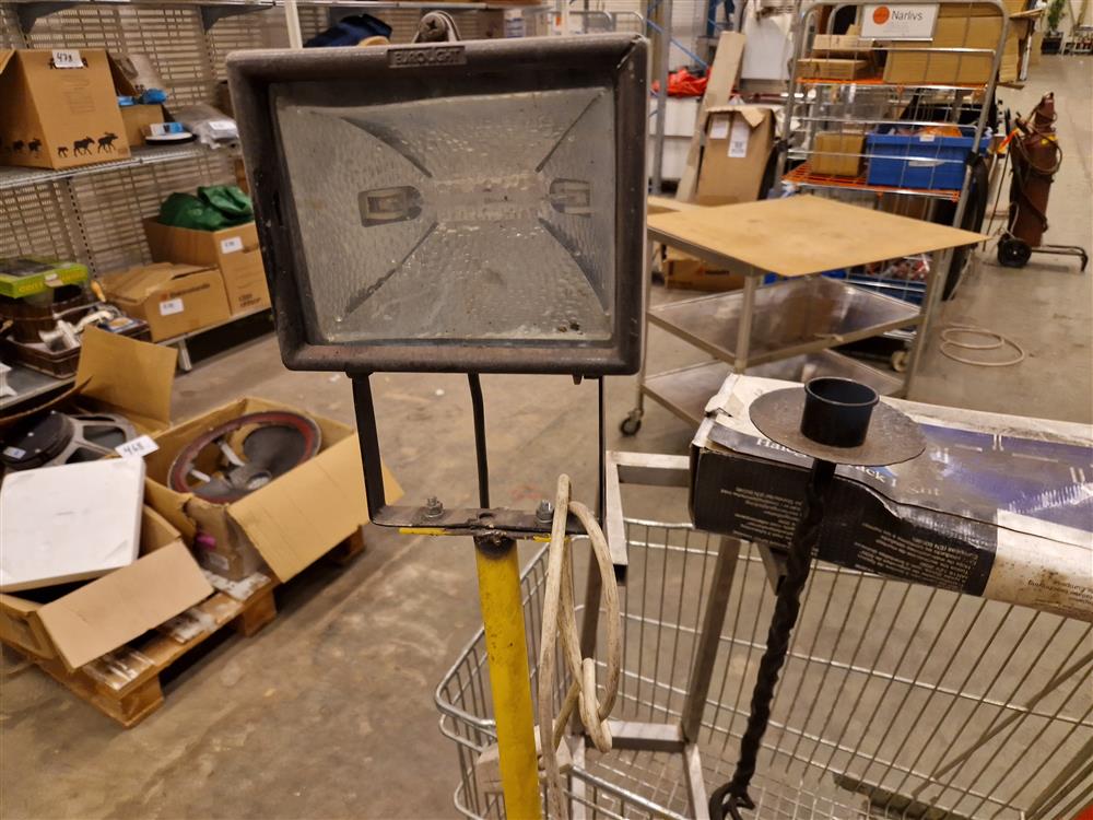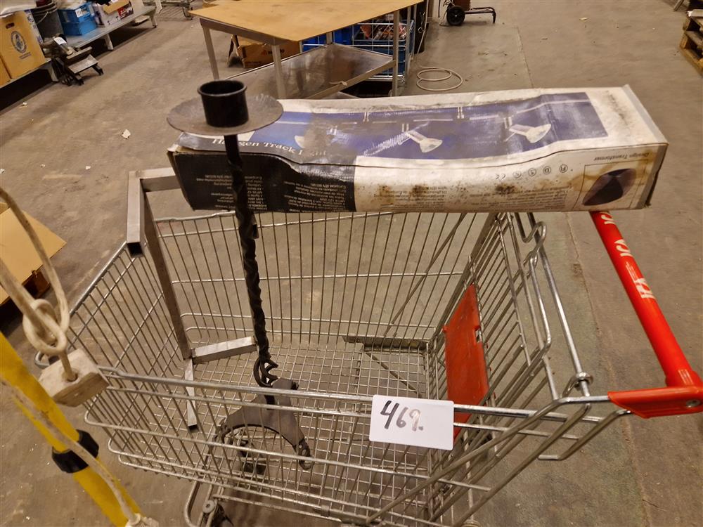Kundvagn, strålkastare, smidesljusstake, lampor
